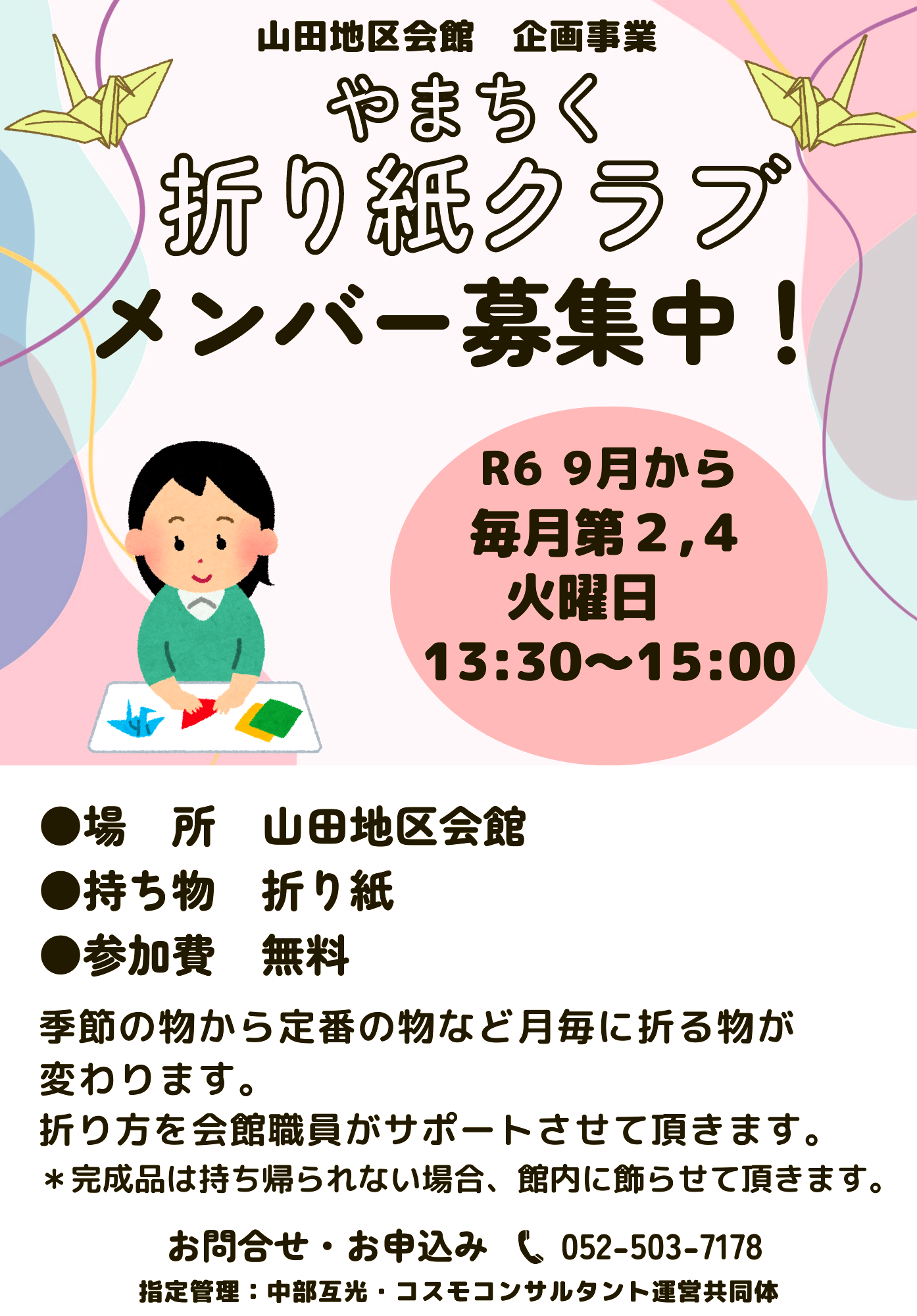 | 未就園児~90代まで、折り紙に興味のある方なら 【曜 日】 第2・4火曜日 |
