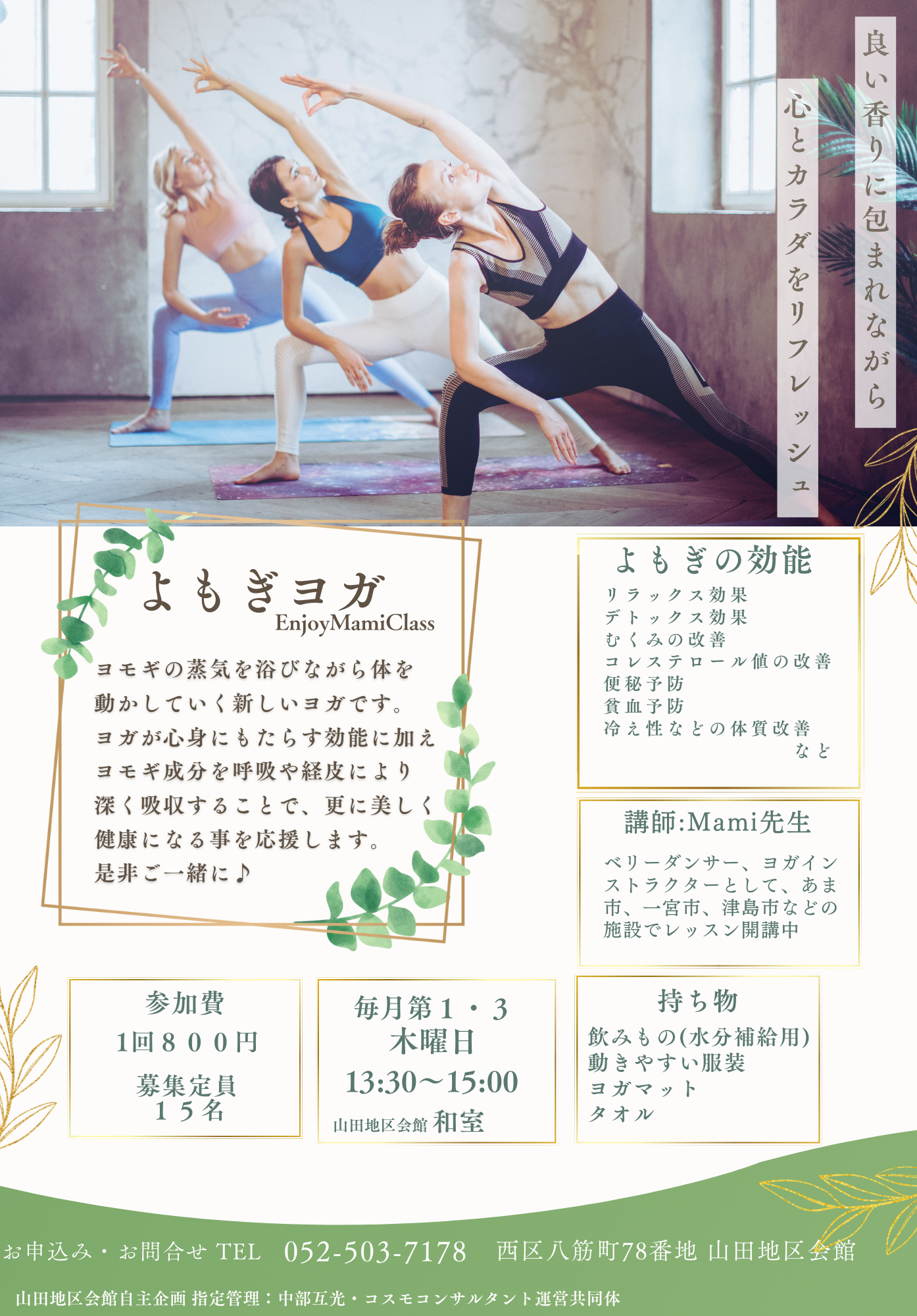 | 【曜 日】 毎週水曜日(年8週お休みあります)