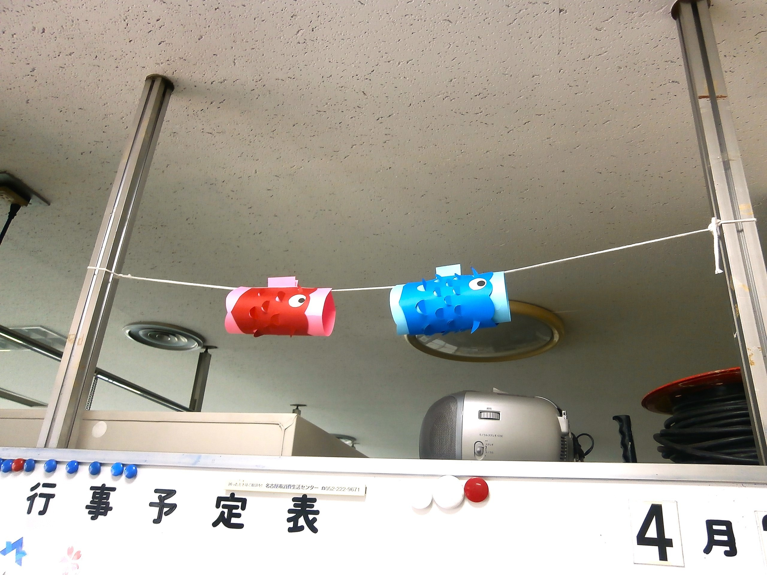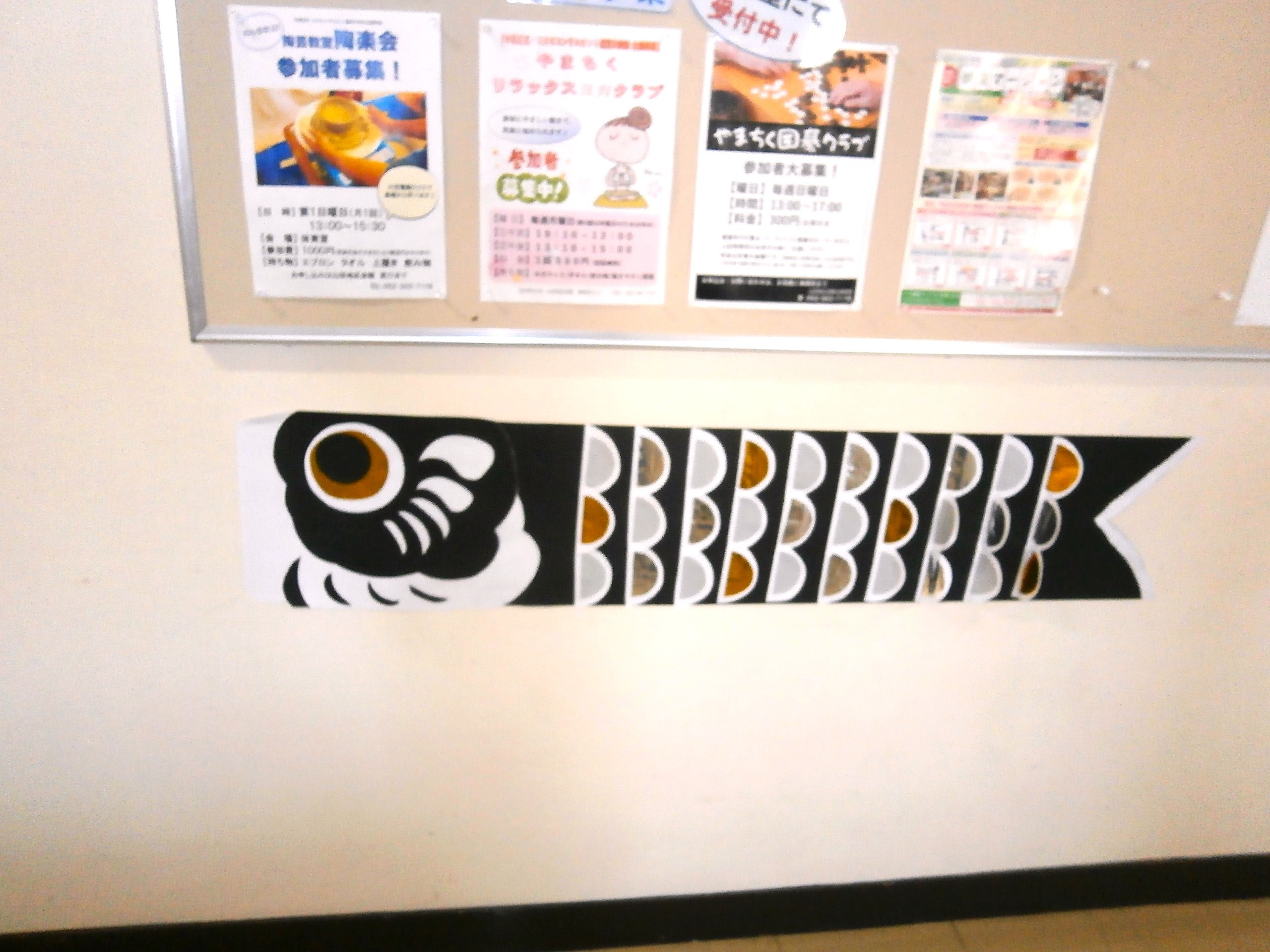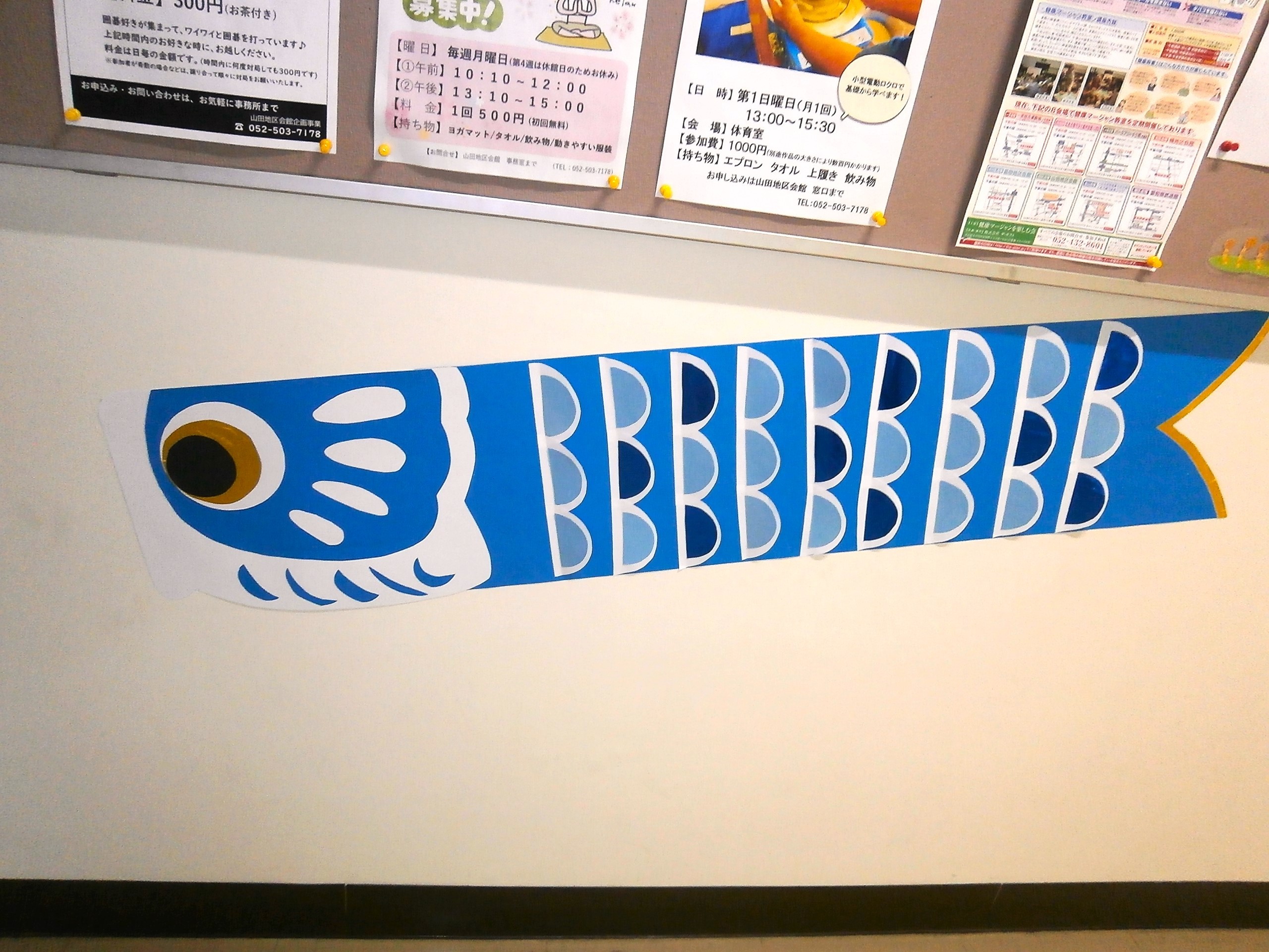 こどもの日 もうすぐこどもの日ですね🎏山田地区会館でも館外や館内に鯉さんたちが泳いでいますよ~♪ぜひご来館の際は探してみてくださいね👀