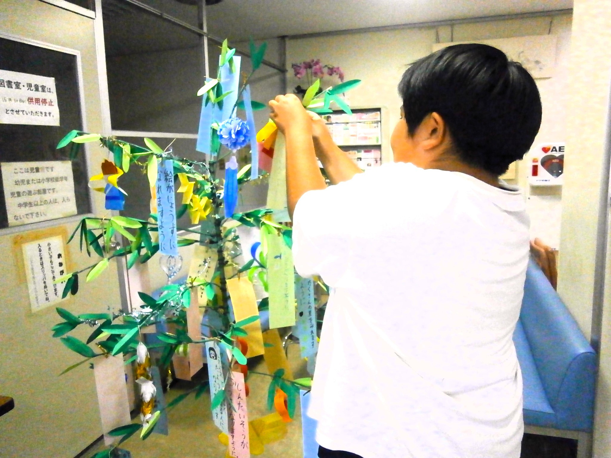 七夕まで3週間! やまちくでも笹を飾り始めました🎋ぜひぜひ、お願い事をいっぱい書いてくださいね🌟