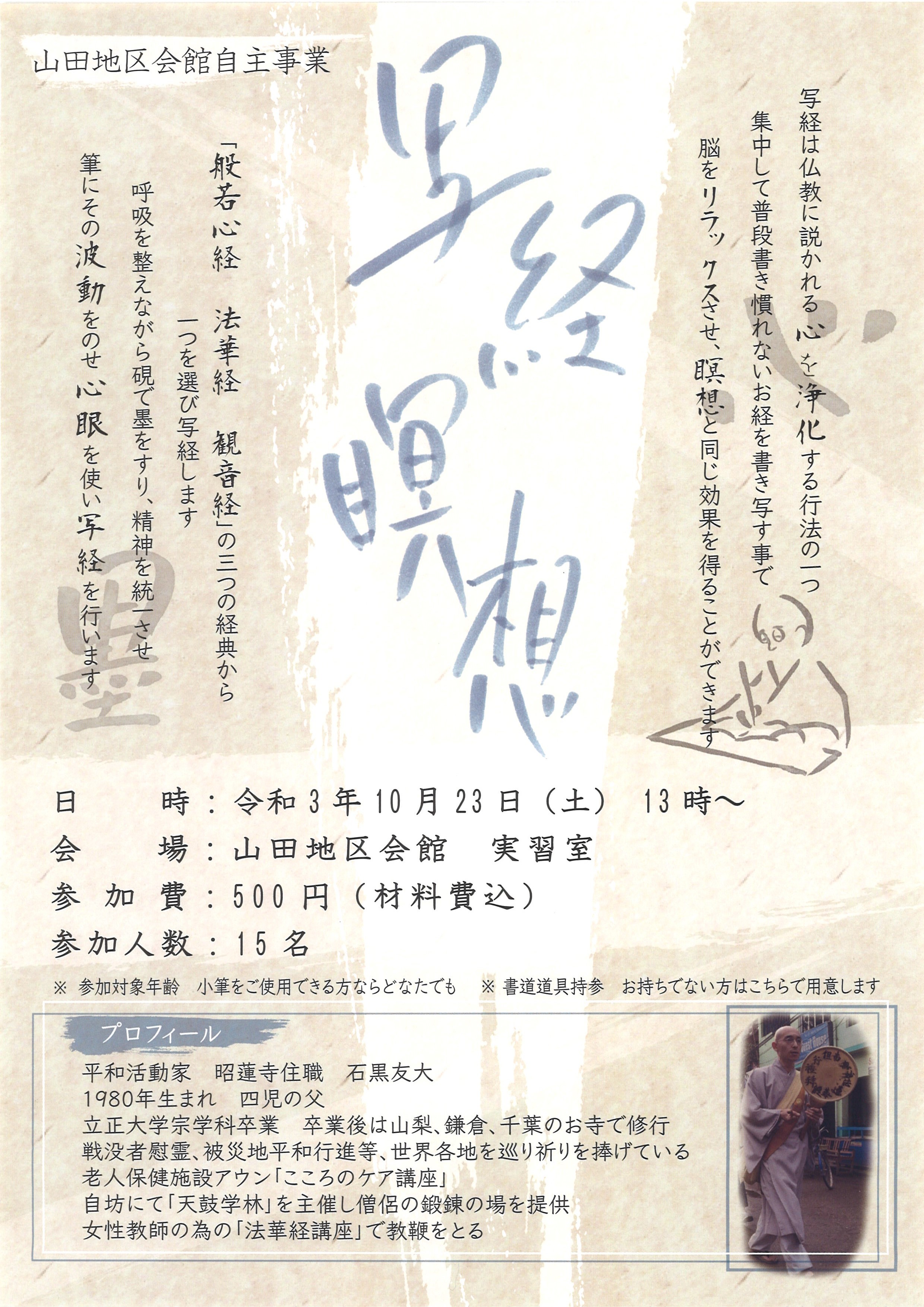 【持ち物】 書道道具(お持ちでない方はご用意します)
