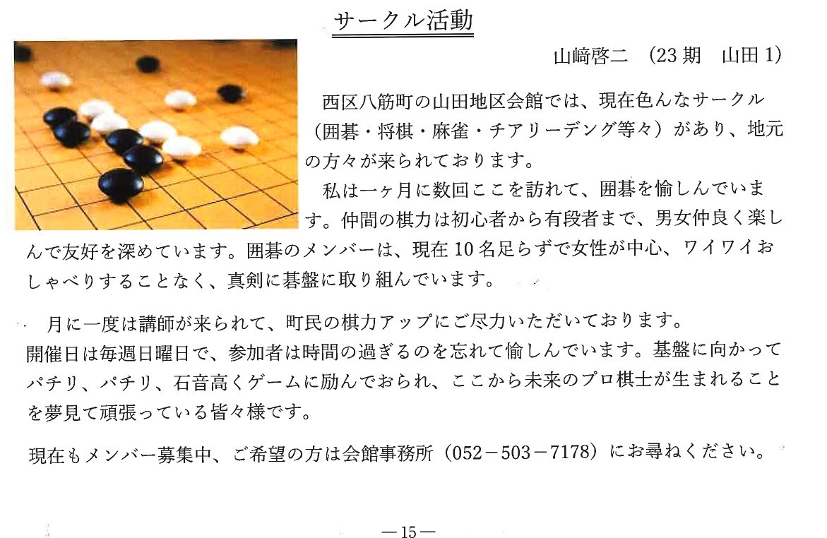 山田地区会館の囲碁クラブに関する記事を載せたい、との事で、