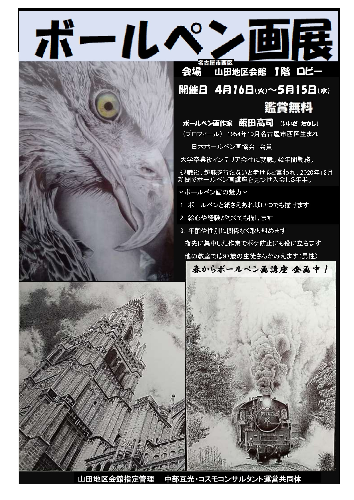 ボールペン画が3点、書が4点。合計9点が出展予定です。