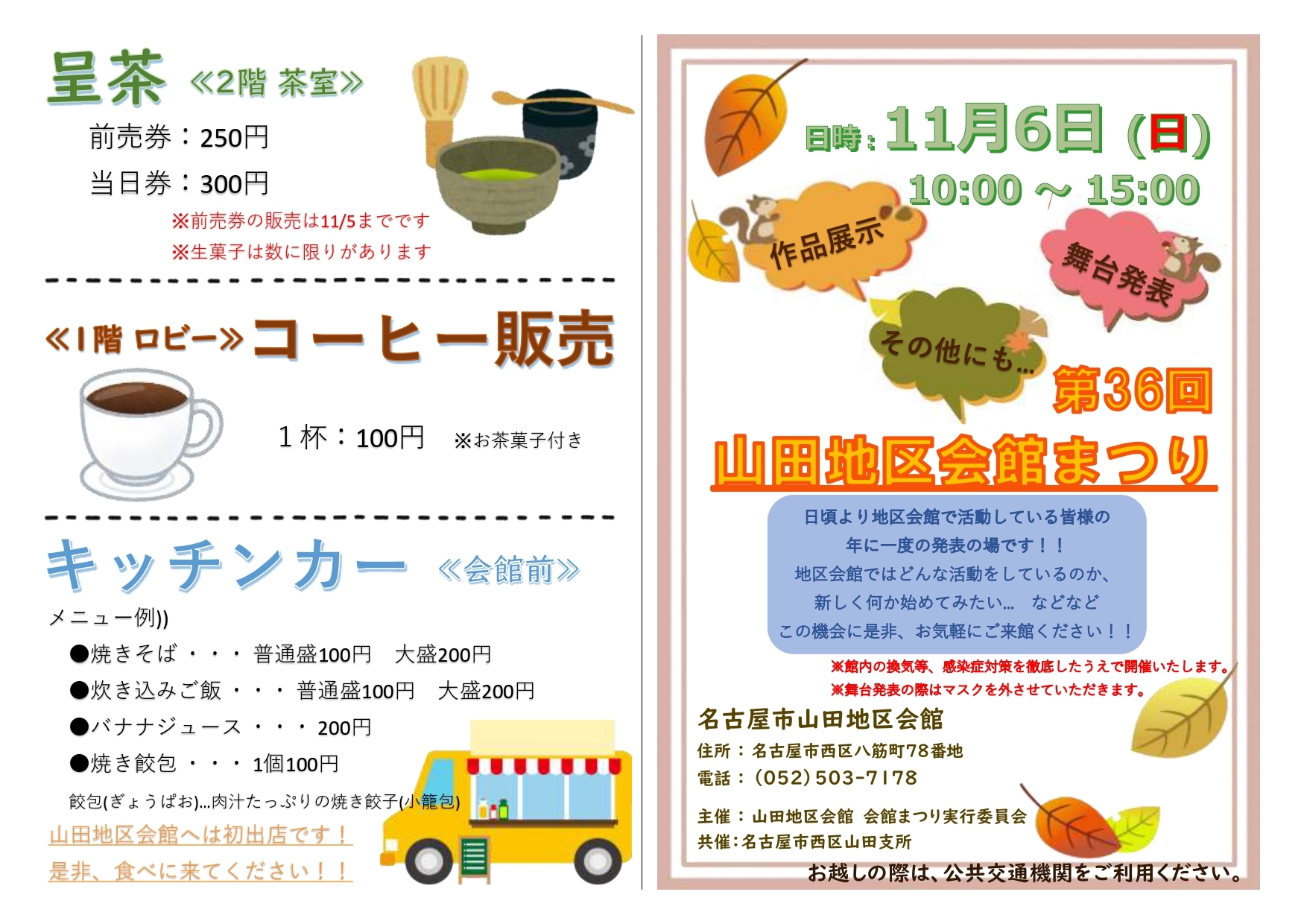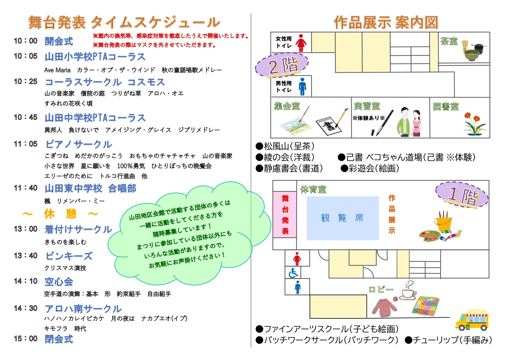 | 第36回山田地区会館まつり ※状況により開催中止・時間変更・内容変更等ある場合がございます。 |